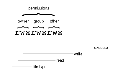 If a place in a permission listing contains a hyphen (-) instead of a permission character, it means that permission (read, write, or execute) does not apply to that set of three.